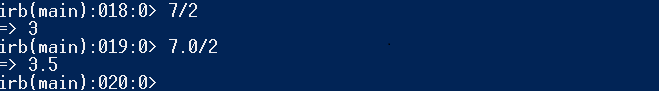 1. When dividing two numbers, the division operator depends on the class of the operands. If both values are integers then truncating-integer division is performed. If either value is a Float then floating-point division is performed.